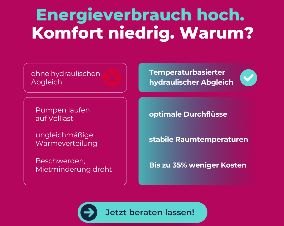 Laut Umweltbundesamt können schlecht eingestellte Heizsysteme den Energieverbrauch um 10–30 % erhöhen – trotz Komfortverluste. Eine Heizung, die nicht richtig warm wird, ist aber kein Komfortproblem, sondern ein Systemfehler.
